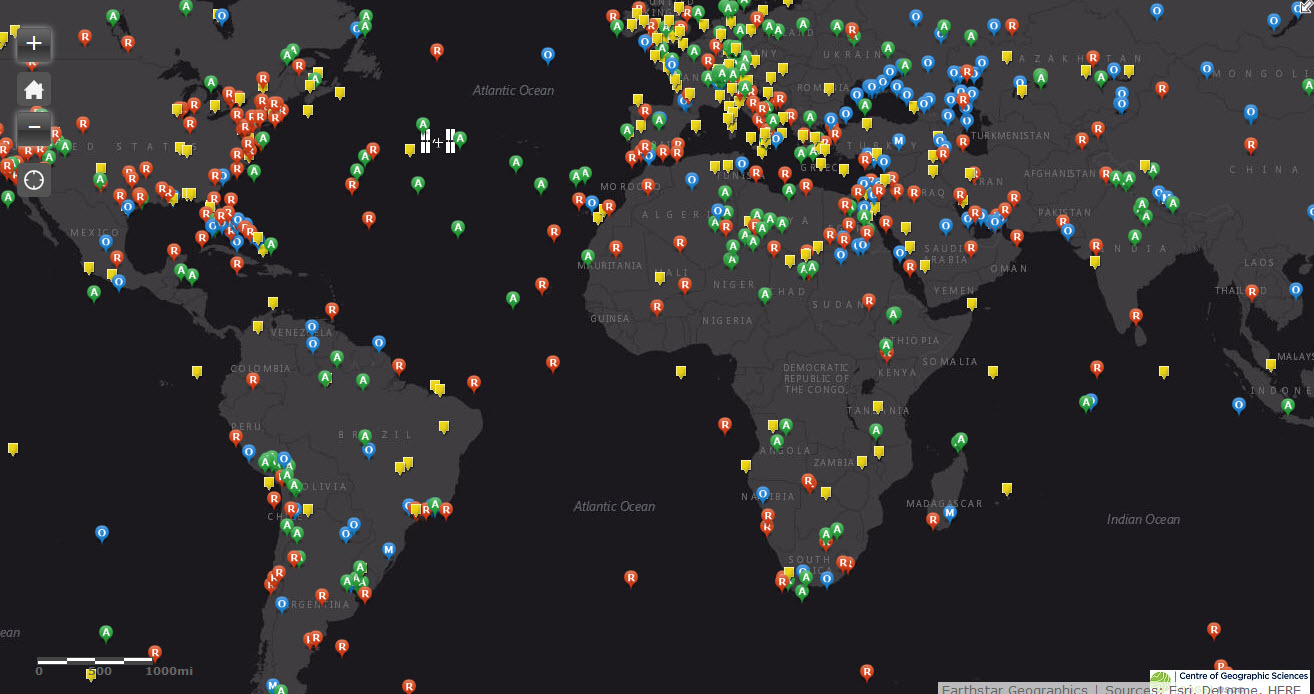 Each locator pin is color-coded to indicate which Astronaut took the photo.
